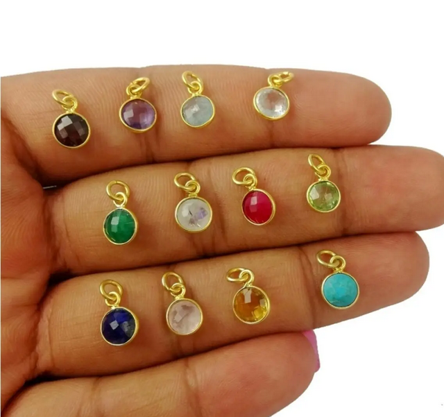 ▹Anhänger: Echte Natursteine aus Indien, in vergoldetem Sterlingsilber. 6mm